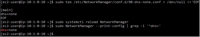 - 설정을 적용하고 나면, 마지막 확인 명령어에서 dns=none으로 표기되야 합니다.