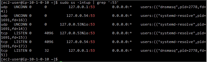 - 53번 Port가 정상적으로 Listening 상태인지 확인