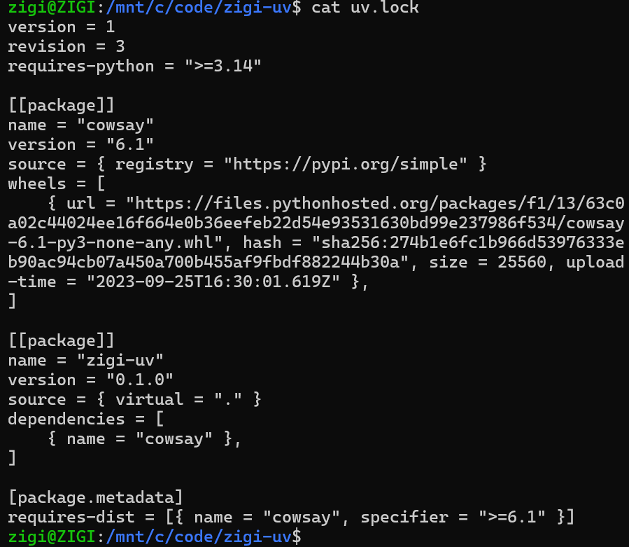 uv add나 uv lock 실행 시 생성되는 이 파일은 프로젝트의 "상태(State)"를 기록합니다. 시스템이 관리하는 파일로, 사용자가 직접 수정하지 않습니다.