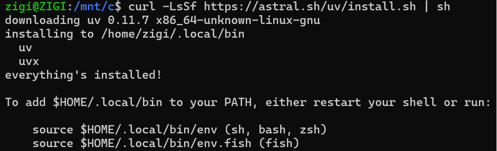 macOS/Linux : curl -LsSf https://astral.sh/uv/install.sh | sh