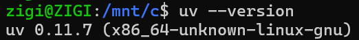 설치 후 uv --version 명령어로 정상 설치 여부를 확인합니다.