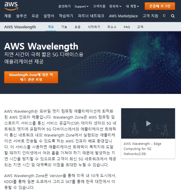 Wavelength Zone을 사용하기 위해서는 Wavelength Zone 액세스를 요청하기 위한 이동 통신 사업자와