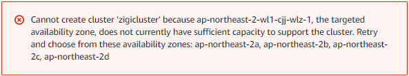 ※ Wavelength Zone 선택 시, 아래와 같은 오류 발생하며 클러스터 생성 불가