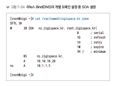 그림 7-23과 그림 7-24는 윈도와 리눅스에서 각각 SOA 레코드에 대한 설정 화면입니다.