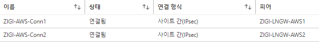 2개의 VPN 연결 설정을 마치고 나면 다음과 같이 설정이 완료된 모습을 볼 수 있습니다.