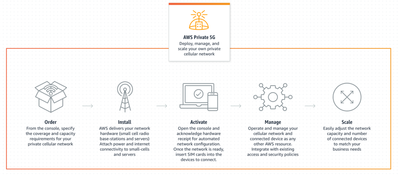 ▪ AWS에서 Small Cell Radio Unit, Server, 5G Core 및 RAN(Radio Access Netowork) 소프트웨어, SIM Card를 제공하고 유지 관리 지원