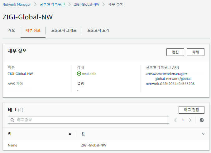 에지 로케이션에 싱가포르 리전을 추가하였기 때문에 Core Network edge가 Add되는 것을 볼 수 있습니다.