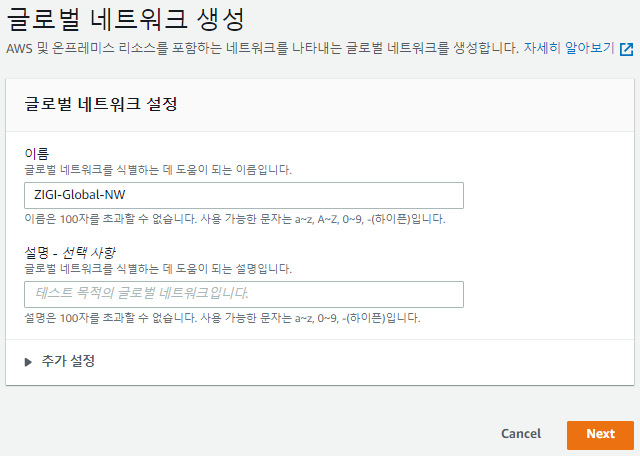 물론 옵션이기 때문에 글로벌 네트워크를 생성한 이후에 생성해도 무방합니다.