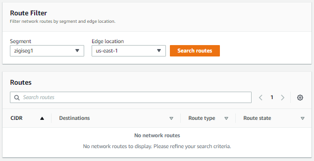먼저 zigiseg1 Segment의 Virginia(us-east-1)의 라우팅 테이블을 보면,