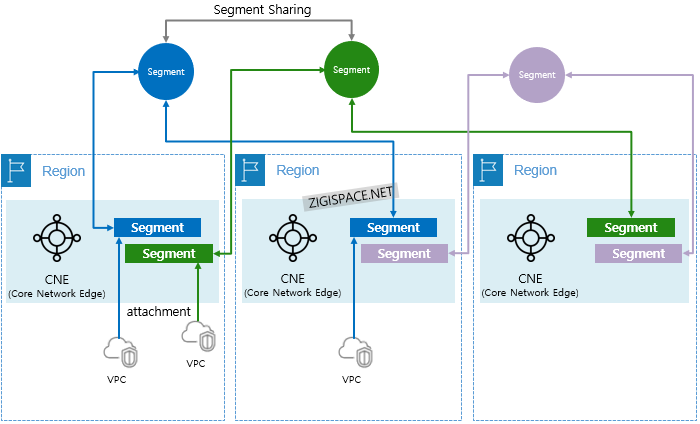 ▪리전 별 Attachment는 각 리전의 CNE 내에 있는 Segment에 연결