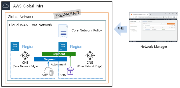 Today Keys : cloud wan, core, network, policy, attachment, cne, edge, segment, concept, 개념