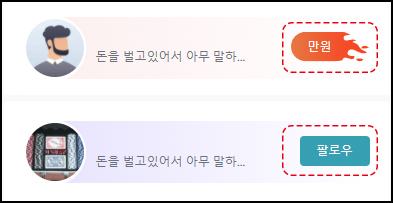 아래와 같이 우측 상단에 '팔로우' 대신에 '만원'이라고 표기 됩니다.
