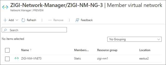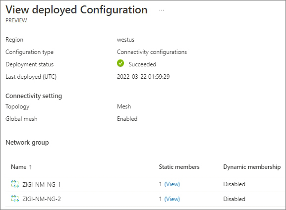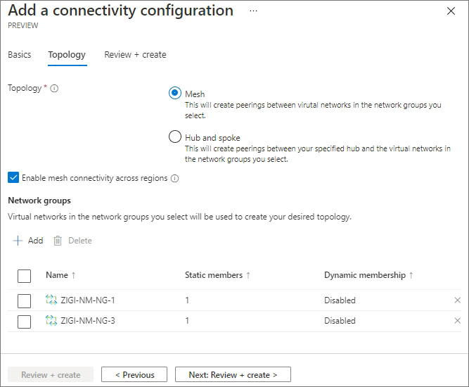 현재 2개의 Network Group이 'ZIGI-NM-CONN-CFG' Connectivity Configuration에 설정되어 있습니다.