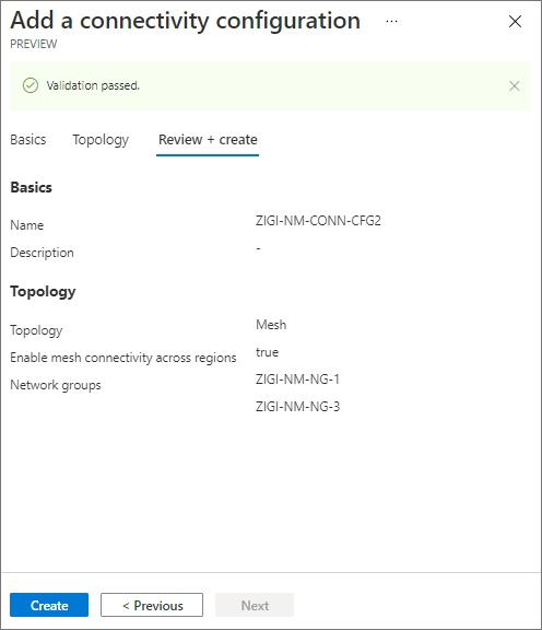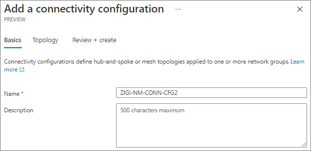 ZIGI-NM-CONN-CFG2라는 이름의 새로운 Connectivity Configuration을 생성합니다.