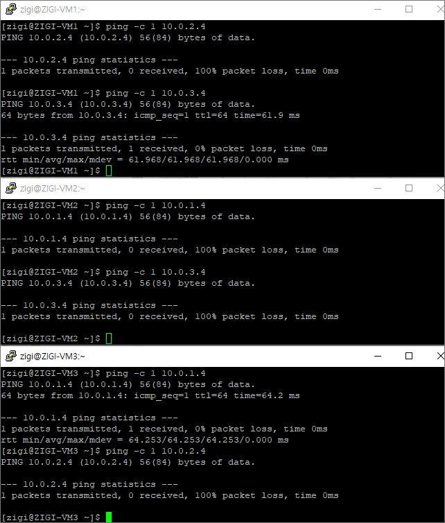 ZIGI-VM1과 ZIGI-VM2 간의 통신도 되지 않도록 변경 된 것입니다.