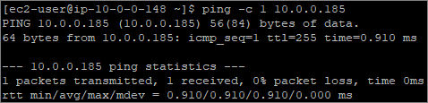 이제 ZIGI-VM1(148)에서 ZIGI-VM2(185)으로 Ping을 보내고, 응답을 받습니다.
