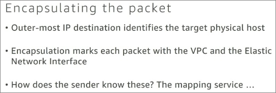 하나의 Host에 다수의 VPC가 혼재되어 있기 때문에 어떤 VPC인지를 구분하기 위한 VPC 구분자와 VPC 내에서 통신하고자 하는 Resource에 대한 ID 값(ex. ENI ID), 그리고 Instance와 같은 서비스 내에서 통신하기 위해 필요한 Elastic Network Interface의 IP 주소, MAC주소, 실제 물리 Host 간의 통신을 위한 물리 Host IP 주소입니다.
