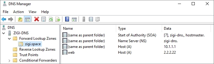 web.zigi.space에 대한 Record와 'internal'이라는 ZoneScope은 첫 번째 예제에서 만든 것을 그대로 사용합니다.