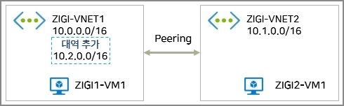 ZIGI-VNet1에는 10.0.0.0/16, ZIGI-VNet2에는 10.1.0.0/16 의 Address Space가 있습니다.