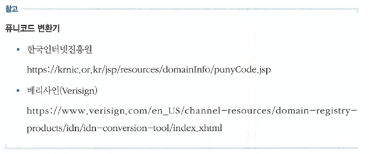 도메인 주소는 영문뿐만 아니라 “http://한국인터넷진흥원.한국”처럼 한글로 주소를 만들 수 있습 니다. 사용자가 도메인을 한글로 등록하고 사용하기 위해 DNS에서는 해당 한글을 “퓨니코드”로 변경하고 이 퓨니코드로 DNS에 도메인을 생성해야 합니다. 한국정보통신기술협회에서 정의한 “퓨니코드”의 정의는 다음과 같습니다.