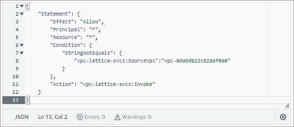 본 포스팅에서는 특정 VPC를 제외하고 VPC Lattice Service를 호출하는 Policy를 다음과 같이 작성했습니다.
