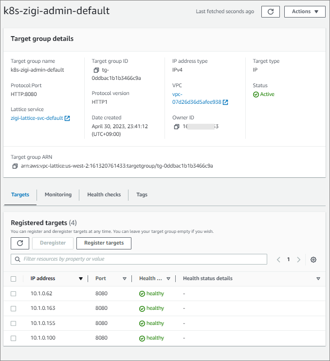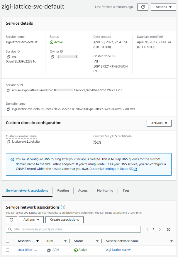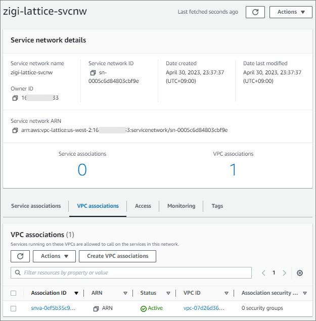 zigi-lattice-svcnw에 정상적으로 VPC가 Association된 것을 볼 수 있습니다.