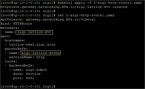 다음은 HTTPRoute를 배포해서, VPC Lattice Service를 생성합니다.