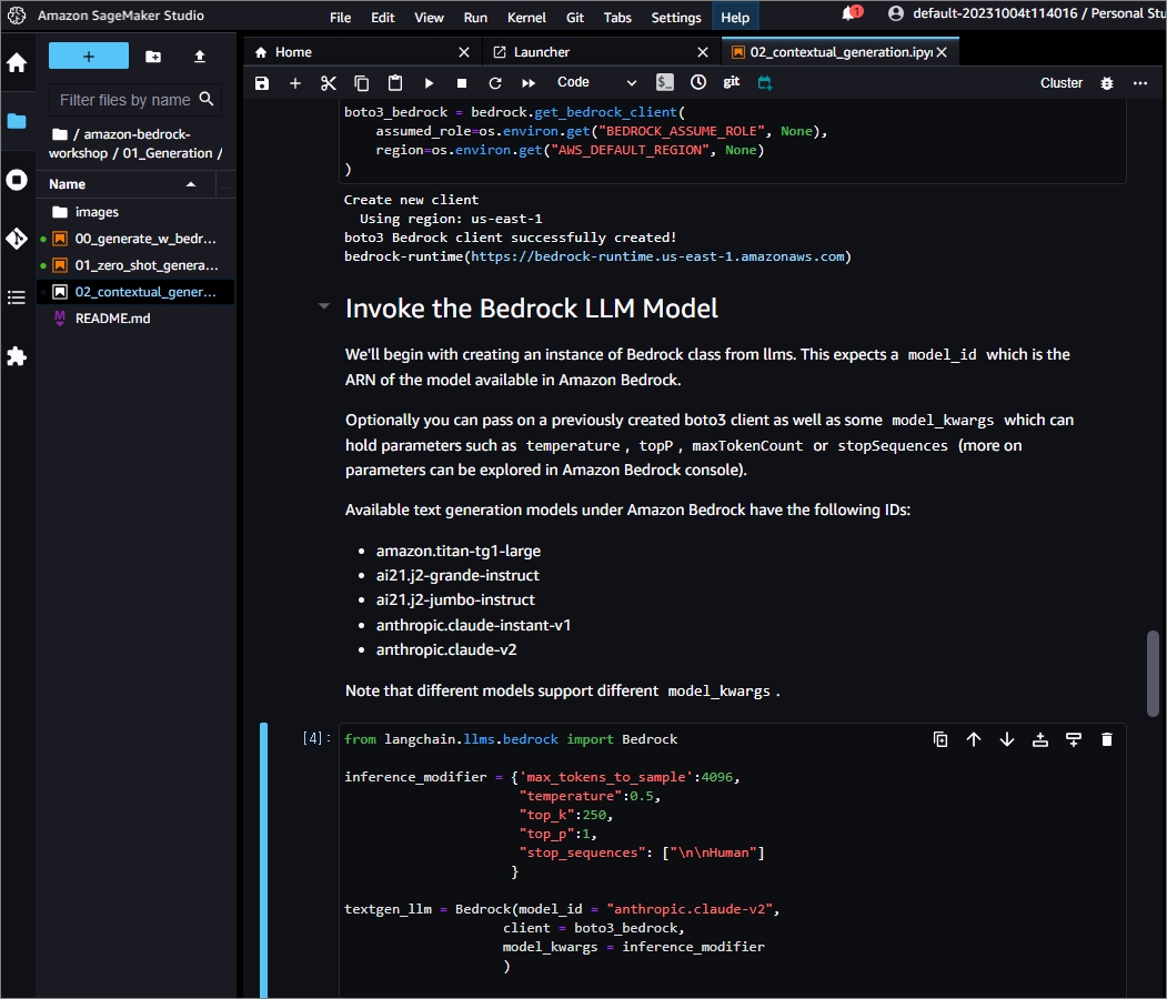 SageMaker Studio를 통해서 Github에 있는 Bedrock Workshop을 가져와서 다음과 같이 실행 할 수 있습니다.