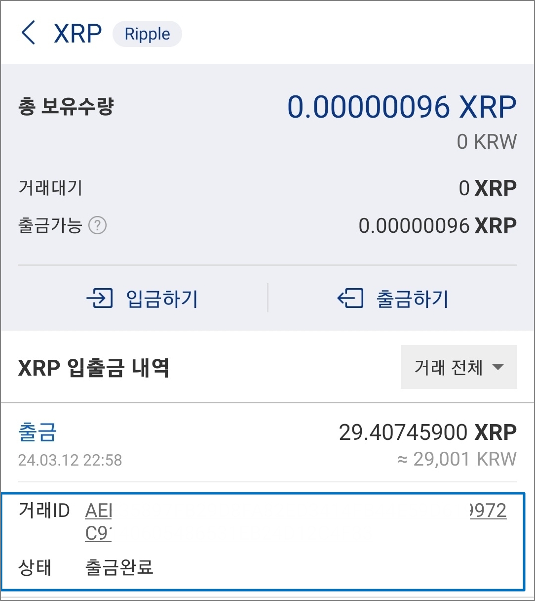 XRP(리플)의 입금 내역을 확인 할 수 있습니다.