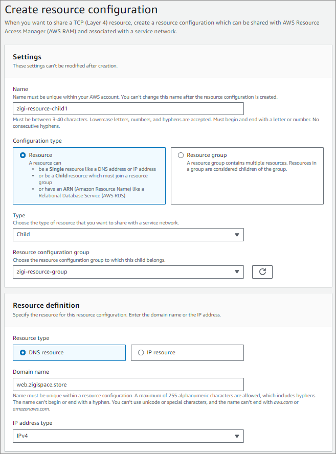 Type을 Child로 한 후, 앞서 만든 Resource Gruop을 선택합니다.