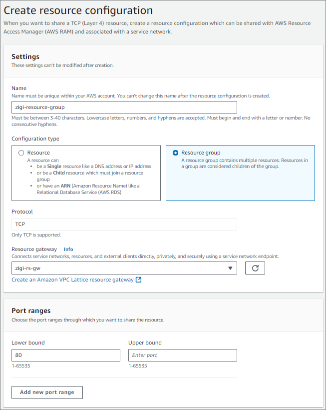 Resource Configuration에서 Configuration Type Resource Group을 선택합니다.