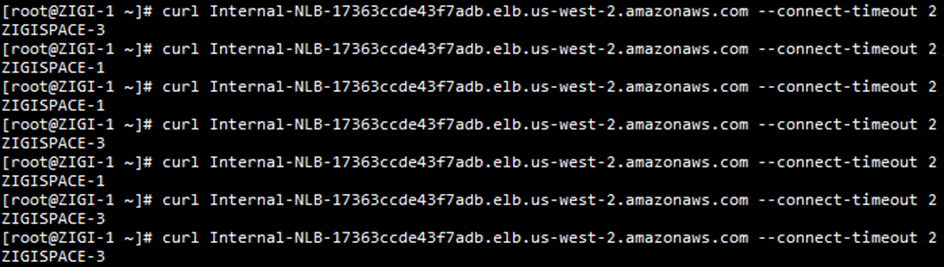 현재 AZ-1/3에만 Healthy한 서버가 존재하는 상태에서, AZ-2의 서버에서 NLB를 호출합니다.